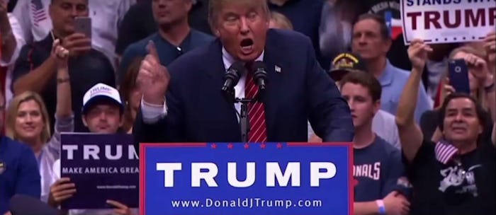 To the distress of some, Trump refuses to stop talking about Muslims and ISIS, frequently conflating the two. After flashing the photos of San Bernardino shooters, Trump pledges — like a modern day Medusa or something — he will “cut the head off of ISIS.” He doesn't give any explanation for how — minus his promise to ban Muslims from immigrating. Just trust him to do it.