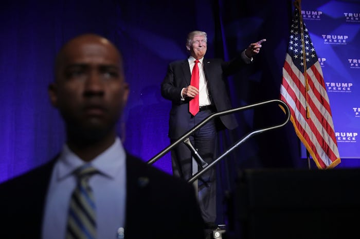 At a campaign event in Reno, Nevada on Saturday night — and just days before Nov. 8 — Republican nominee Donald Trump was rushed off the stage by Secret Service. It was not immediately clear what happened or what led to the actions, but CNN reported that there was "an apparent threat" towards the GOP nominee. Several minutes after he was removed by two members of his security detail, he returned to the stage to deliver his speech.
