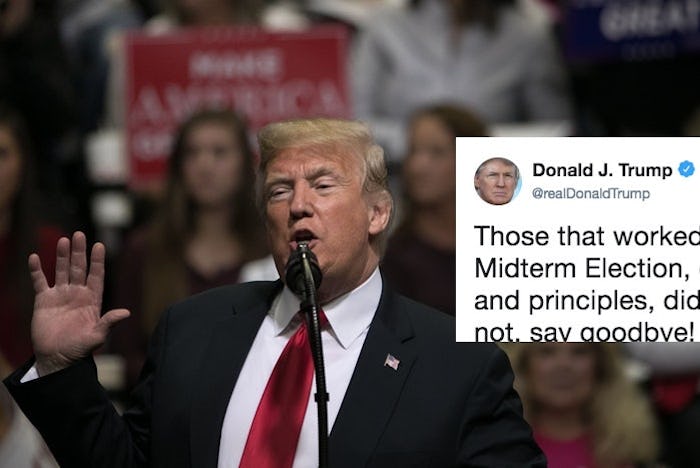 "Those that worked with me in this incredible Midterm Election, embracing certain policies and principles, did very well," Trump tweeted. "Those that did not, say goodbye! Yesterday was such a very Big Win, and all under the pressure of a Nasty and Hostile Media!"