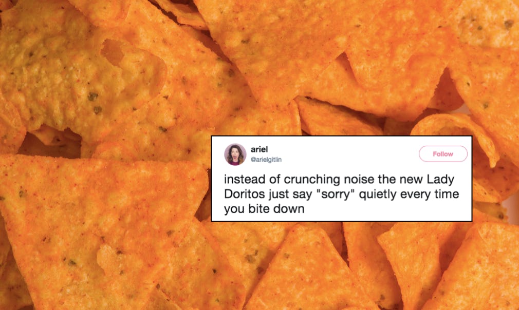 After this backlash, I wouldn't be surprised if Doritos back-peddled a bit on "women-friendly" chips. Thank goodness for the internet, which is always ready with the perfect amount of snark for this kind of situation.