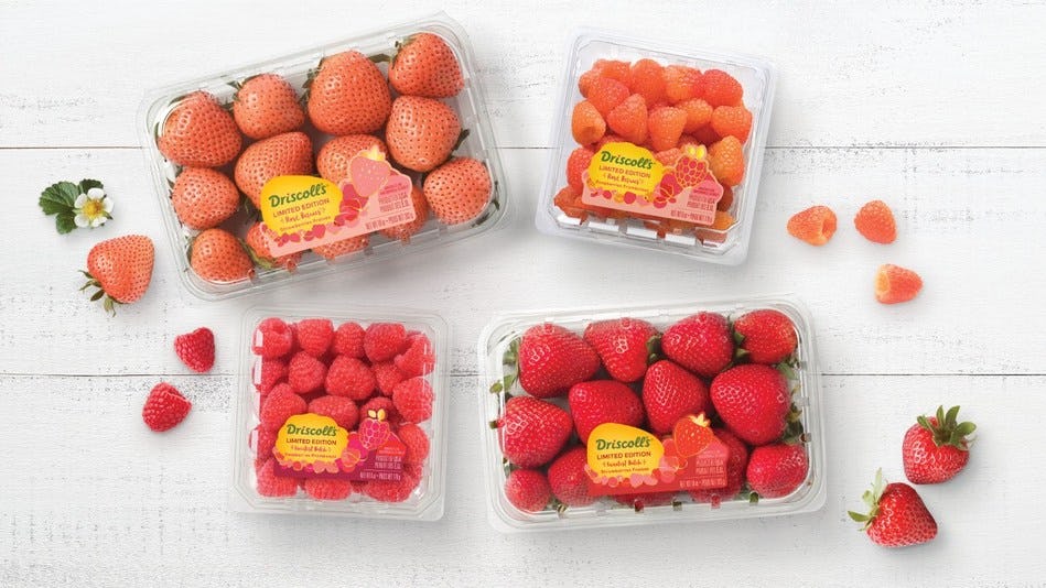 This carefully bred non-GMO berry is a paler hue than your typical garden strawberry or raspberry, and it has notes of peach flavor with a floral finish. The texture is different as well, with a creamy flesh that blooms across the tongue, spreading the flavor through the palate much in the same way you would enjoy a rosé wine. The Sweetest Batch raspberries and strawberries are curated specifically for their intense sweetness, making sure that "sour berry face" is a thing of the past. The rosé berries will be sold through Fresh Direct and Whole Foods, and the Sweetest Batch berries will also be available at Wegmans retailers.