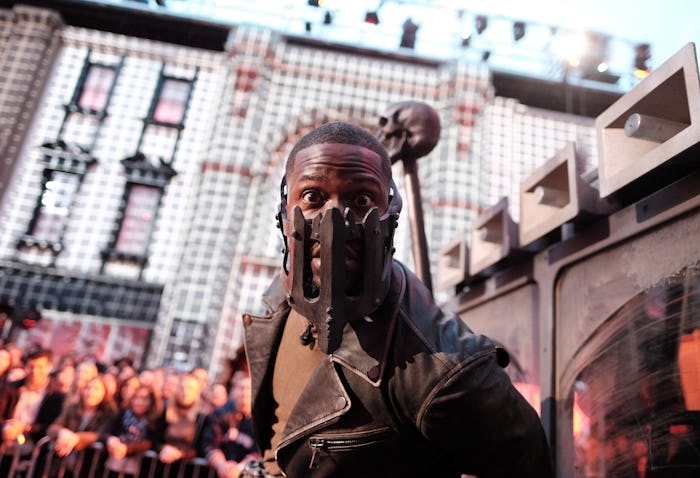 Both hosts looked like they belonged on the set of Mad Max: Fury Road from their props to their costumes and the pyrotechnics shooting out flames to match.