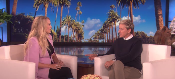 Underwood made an appearance on The Ellen DeGeneres show Wednesday in support of her new album, but unsurprisingly, her pregnancy was a hot topic. One thing the singer did share? That being pregnant with her second child felt like "a different ball game" compared to her first, and that she also felt like she was showing much sooner. Underwood — who is definitely sporting a visible bump — quipped, "I feel like I didn’t look pregnant and then I woke up and I looked like this." But sensing that DeGeneres was hoping for more details, she joked, "I feel like you're just getting me to talk about it so I'll say 'he' or 'she'."