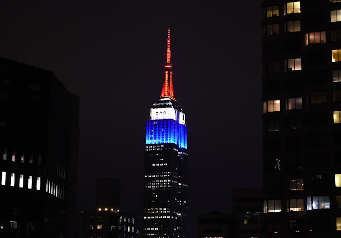 EARLIER: After multiple, devastating terrorist attacks in Paris on Friday night, New York City's Empire State Building was lit red, white, and blue as a gesture of support on a night that has unfolded in an ever-more-horrifying way after over 120 people were reportedly killed in multiple explosions and shootings.