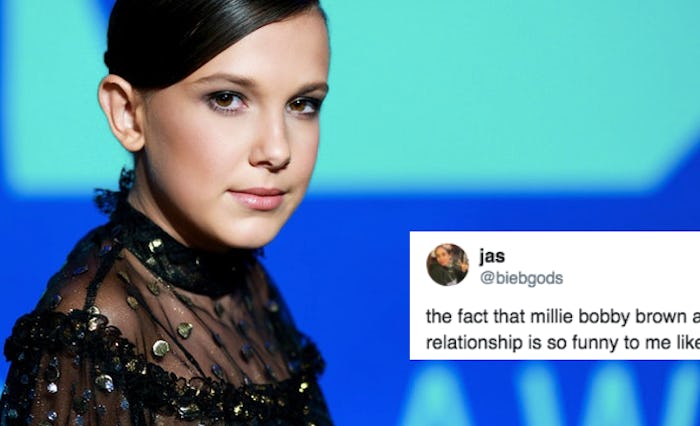 I'm not sure what it is about Stranger Things sensation Millie Bobby Brown that always seems to get the internet so excited, yet so heated. I mean, she has a bunch of co-stars, all around the same age, who get to go about their lives virtually free of dealing with hardcore public opinion about every little thing they might do. But Brown? That girl wears a dress to The Golden Globes and people's heads start to explode. So you can imagine the reaction when reports hit social media that Millie Bobby Brown has a boyfriend. And whether it's true or not, fans simply lost it and their many opinions on the reports are just all over the place. Because Lord knows she's *definitely* the first 13-year-old girl to have a boyfriend (not including me and basically every girl I've ever known or heard of, naturally).
