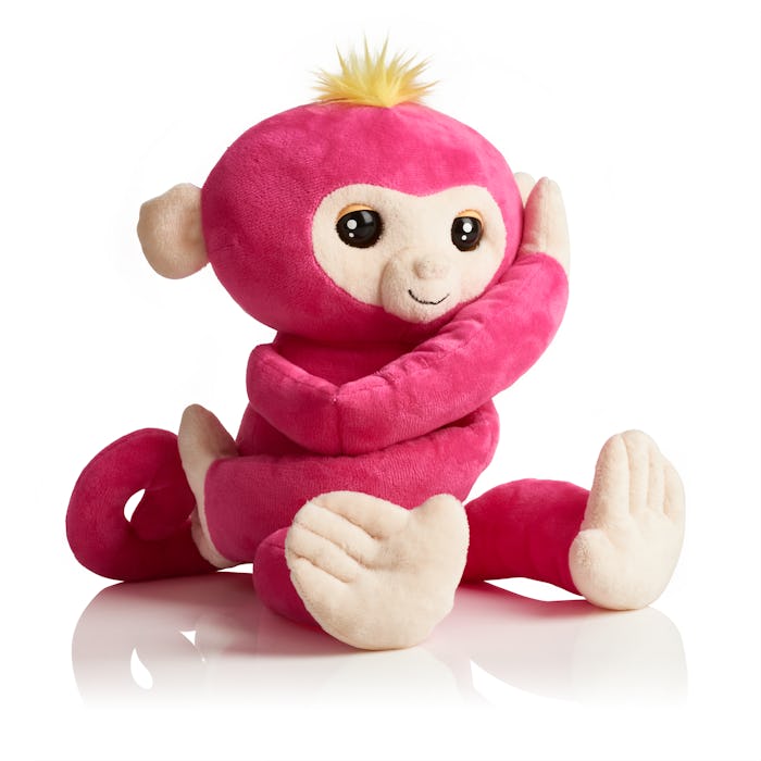 Fingerlings Hugs are a larger, plush version of the original huggable toy, with long arms and over 40 loaded phrases. They give kisses and repeat phrases as well. And now these toys are officially being sold at major retailers like Target and Amazon, and will cost parents $29.99. Currently, they're featuring a blue monkey named Boris and a pink monkey named Bella, but knowing the cunning marketing team at WowWee, it's only a matter of time before we see a broader range of characters available in this new Hugs format.