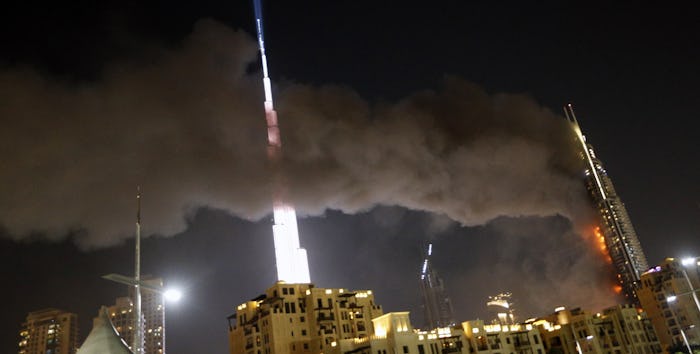 On Thursday, a fire broke out in a hotel near Dubai's planned New Year's Eve fireworks display, according to NBC News. While the cause of the fire — which engulfed at least 40 stories of The Address Hotel, a five-star, luxary hotel and apartment complex — is unknown, terrorism has not been mentioned as a possible cause. The building is located near the Burj Khalifa, the world's tallest skyscraper. As many as four crews of firefighters tried to battle the blaze, according to CNN.