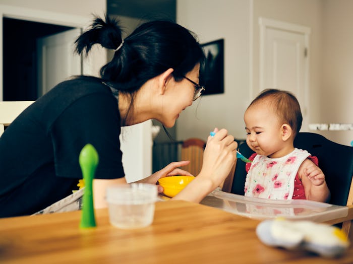 Now you and your baby can have a bowl of oatmeal together in the morning. “Fortified baby cereal also provides a good source of iron,” Erin Wade-Palinski, a registered dietitian, tells Romper in an email. The store variety is fine; just add formula, expressed breastmilk, or water to form a thin consistency. Once your baby gets used to the cereal, you can always add in other flavors, such as pureed fruits and veggies.