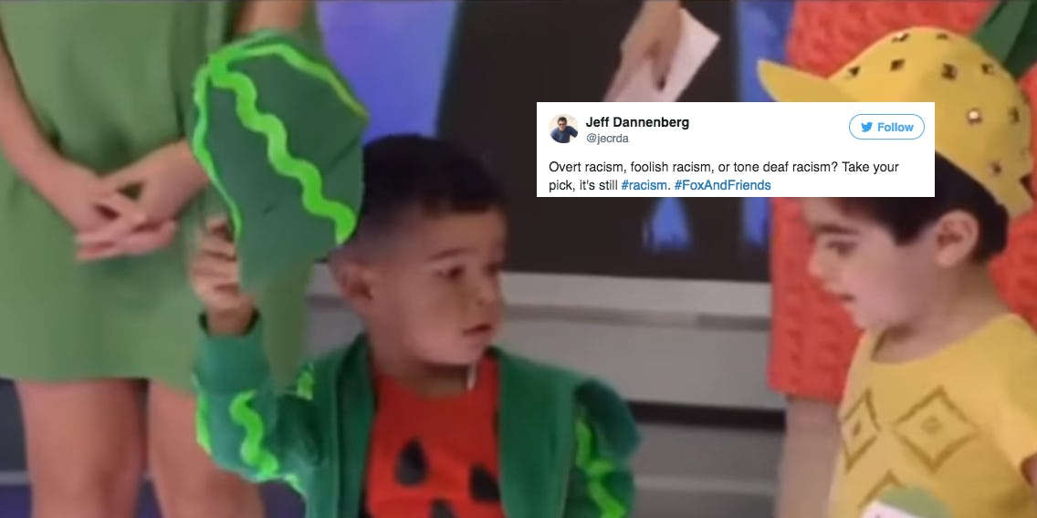 Halloween is almost here, and we all know what that means: a barrage of morning news fluff pieces showcasing cheap, last-minute, do-it-yourself costumes for all those parents who neglected to look at a calendar for the last month or so. What could go wrong? Well, dressing a black child up as a watermelon is certainly some bad optics, and people are letting Fox & Friends have it for the Sunday morning segment that some are calling tone-deaf, and others are calling just plain racist. Considering how many people were involved in the broadcast, from producers to on-air talent, it's pretty surprising that nobody made the connection. Fox News has not returned Romper's request for comment.