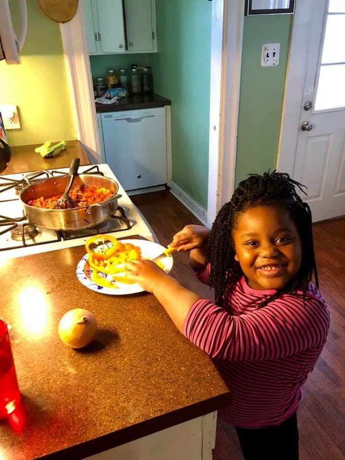 There’s several reasons we fostered this sense of independence in them. The first reason was unintentional. We had our first three children in quick succession, and just brought our grand total to four kids in under seven years. Our house is hectic. It is nonstop, outside-voices-inside, scooters-in-the-dining-room chaotic. If I want to stop supervising my children and actually cook dinner, I need to hold their attention. I need to involve them. Asking them to help with dinner is my way of having my eyes on them and of preventing mischief from occurring. Do you know how long it takes a preschooler to chop a single onion? Long enough for me to debone a chicken.