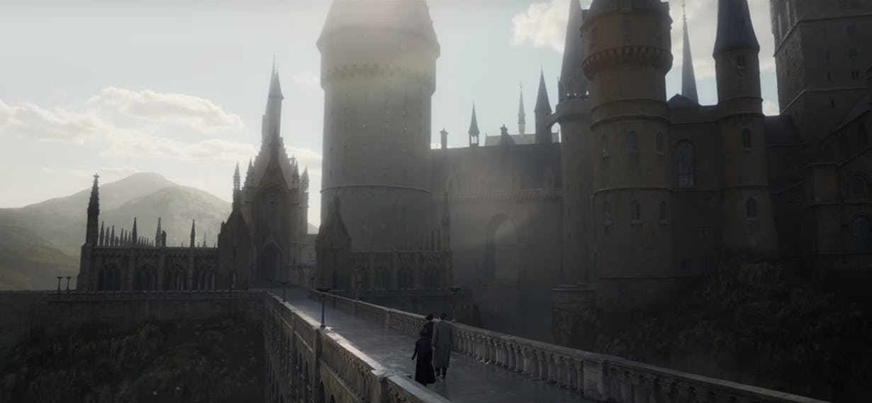 Did you spot it? That appears to be Torquil Travers (Derek Riddell), Theseus Scamander (Callum Turner), and Leta Lestrange (Zoë Kravitz) apparating onto the bridge leading into Hogwarts. Apparating, if you're new to the Wizarding World, is a means of magical transportation wherein a witch or wizard can teleport to a nearby location that they're familiar with, simply by visualizing where they want to go. The problem is that it's very well known, and repeated several times throughout the series, that it's impossible to apparate within Hogwarts grounds.