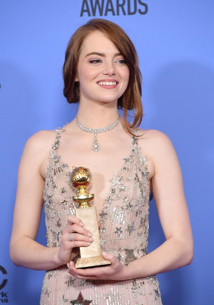 If Stone wins, she'll be adding a new statue to the truly dizzying array of accolades she's already received. According to a record of Stone's nominations and awards at IMDB, the actress has won 47 acting awards, ranging from her 2011 MTV Movie Award win for Easy A to her 2012 People's Choice award for Favorite Movie Actress. In addition to these wins, Stone has been nominated 103 times for acting awards.