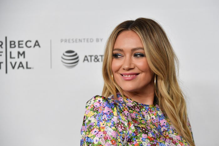 As BuzzFeed reported, a number of celebrities have spoken out about their support for a woman's right to choose in recent weeks. And it turns out Hilary Duff is among them. On Friday May 17, the actress took to Instagram to make her stance on abortion known. Duff shared pins showing a hand holding a sign that reads, "Uteruses before duderuses." If you scroll over, the second image reads, "77% of anti-abortion leaders are men. 100% of them will never be pregnant." Duff's caption, meanwhile, was simply two emojis of the female symbol, a flexing arm, two fingers forming the peace sign, and a middle finger.