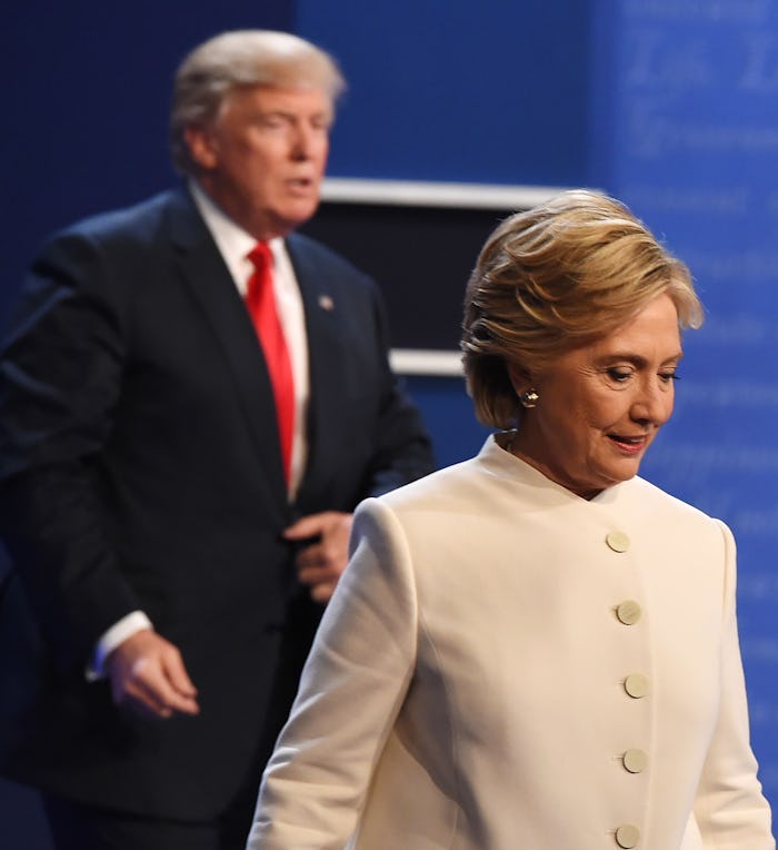It was the second presidential debate and Donald Trump was looming behind me. Two days before, the world heard him brag about groping women. Now, we were on a small stage, and no matter where I walked, he followed me closely, staring at me, making faces. It was incredibly uncomfortable. He was literally breathing down my neck. My skin crawled. It was one of those moments where you wish you could hit pause and ask everyone watching, 'Well, what would you do?'" she said. "Do you stay calm, keep smiling and carry on as if he weren't repeatedly invading your space? Or do you turn, looking him in the eye and say loudly and clearly, 'Back up, you creep. Get away from me! I know you love to intimidate women, but you can't intimidate me, so back up. I chose option A. I kept my cool, aided by a lifetime of dealing with difficult men trying to throw me off,” Clinton writes. “I did, however, grip the microphone extra hard. I wonder though whether I should have chosen option B. It certainly would have been better TV. Maybe I have over-learned the lesson of staying calm, biting my tongue, digging my fingernails into a clinched fist, smiling all the while, determined to present a composed face to the world.