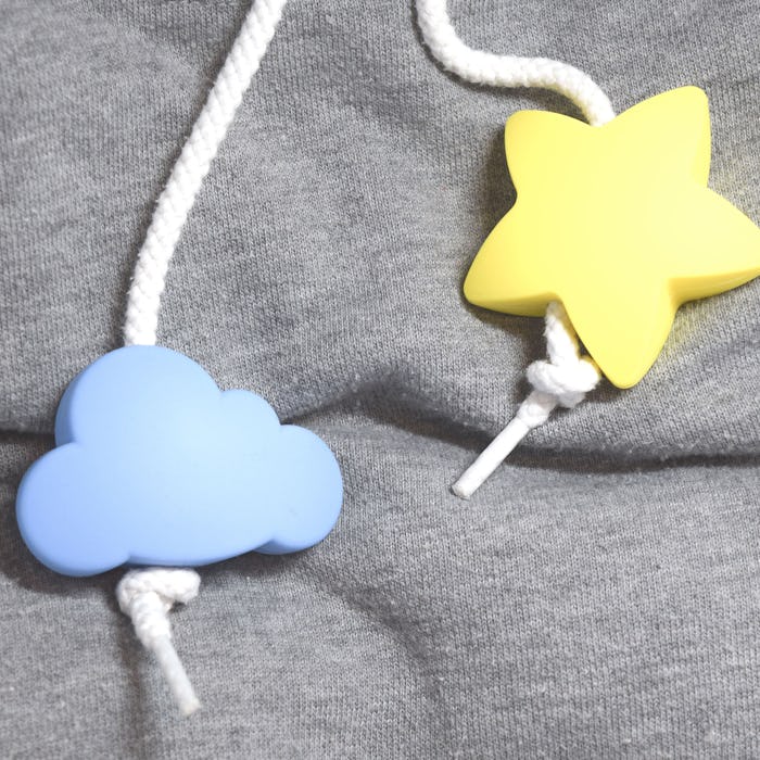 All you have to do is tie a knot in your sweatshirt strings to keep the Hoodie Chew Chew from falling off, and you're good to go. You get to wear one of the comfiest items in your closet, and your little one gets to chew to the their's heart content. The teethers cost $15, and they come in three different fun shapes. There's a star, a cloud, and a skull, and each design comes in three different cute colors. Parents who want to make their home a germ-free zone will also appreciate that they're super easy to clean, since they're dishwasher safe.