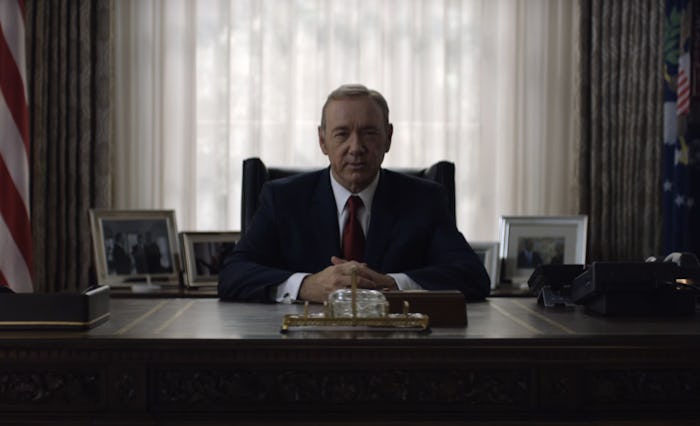 It's Frank Underwood time. Tonight during the Golden Globes, another House of Cards trailer aired, and didn't it just get you all ready to watch the new season? (*Raises hands*) House of Cards premieres March 4 on Netflix, but as the show is wont to do, there's been pretty limited advertising around it. However, because we're in the midst of an election season, the Netflix original series has aired its trailers for the upcoming season with pretty spot-on marketing: once, during the GOP debate, and tonight, during the Golden Globes award show.