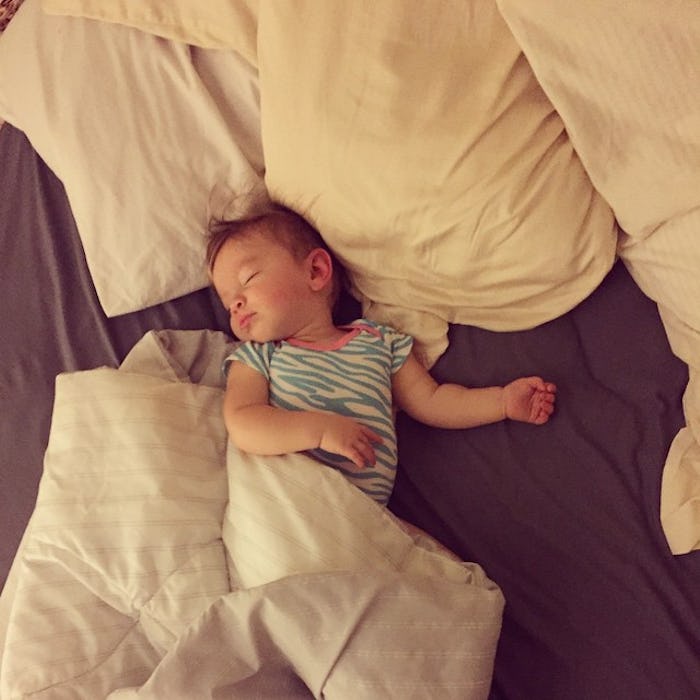 I swore up and down that I would never co-sleep with my daughter. I cited a million reasons, mainly that I thought it was unsafe and that it would ruin her future sleeping habits. Turns out that when you're sleep deprived? You'll do just about anything to catch some more Zs. I can't count the number of times I pulled my little girl into bed with me just because it was easier than getting up at 4 a.m. or trying to convince her to go back to sleep. And the damage it's caused? Well, none. She still wakes up every so often and needs snuggles or to sleep with me for a few extra hours, but she's a great sleeper and spends 99 percent of her sleeping in her own bed.