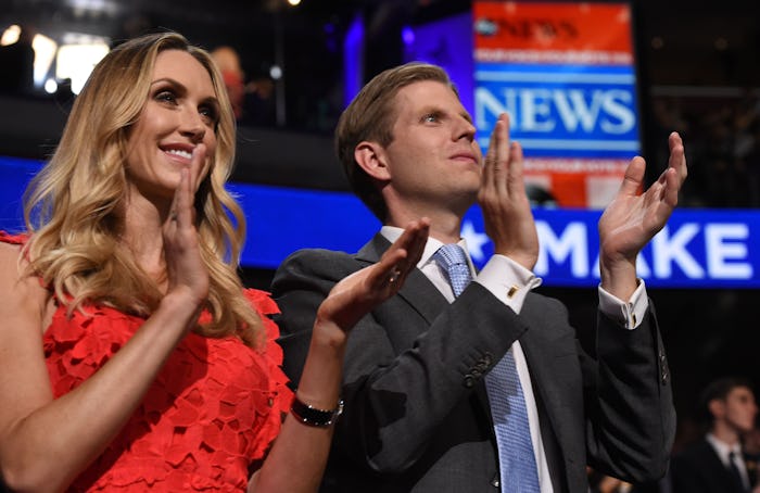 Republican presidential candidate Donald Trump now has his party's official nomination after clinching the required delegates during day two of the Republican National Convention Tuesday, but he's long had the public support of a slew of family members. Son Donald Trump, Jr., and daughter Tiffany Trump celebrated their father's reported investment in the success of both his employees and his children during day two of the RNC, and his second son, Eric, will take the stage Wednesday evening. As is true with the spouses of Trump's other married children, his wife has displayed her allegiance by joining the rest of the Trump clan at the RNC. She's part of the family now, but how did Eric Trump and Lara Yunaska meet?