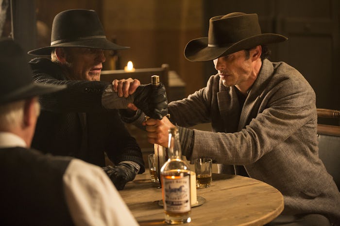 On Westworld there's a lot of people that have questionable morals, particularly in regards to Dr. Robert Ford and the character known as the Man in Black. Ford, along with his mysterious partner, Arnold, built the park and Ford's control over the hosts can sometimes seem a bit terrifying. Meanwhile, the way in which the Man in Black treats the hosts, with general ruthlessness and unkindness, is appalling to watch. On last Sunday's episode, viewers saw these two come together and have a nice chat over drinks. There's clearly a history between them, which begs the question, how do Ford and the Man in Black know each other on Westworld?