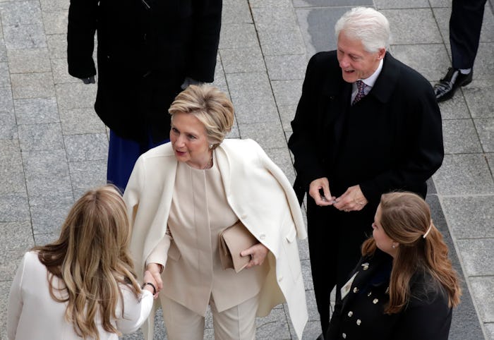Known for her pantsuits, a lot of people expected Clinton to show up to the Inauguration in purple. According to Vanity Fair, purple is the color she wore during her concession speech and it had its own symbolism — it was a show of support. Often, swing states (the states that could go either way in an election) are called purple states as they are neither red or blue. It was a show of being bipartisan, of unity, of bringing together the country at a moment when it was still so divided. It was a bold choice on her part and its symbolism wasn't lost on America or her supporters.