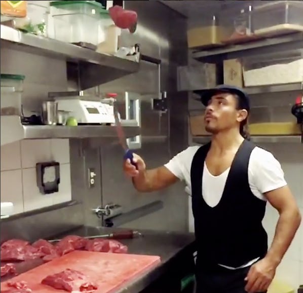 I'm not usually one for regrets, but when I discovered Salt Bae, the handsome Turkish chef who's taken Twitter, and the entire internet, by storm, I began to wish that I had waited to go abroad to Turkey until now, so I could meet the meme star. But alas, though I've spent my fair share of time in Istanbul, I didn't get to meet Salt Bae, otherwise known as Nusret Gökçe, while I was there. Regrets aside, I can't help but love Gökçe and his mystifying meat-shredding skills, for reasons too numerous to list. But perhaps one of the most intriguing aspects of Gökçe is his relative mystery and the lack of personal details available to me—I mean, the internet. While he doesn't seem to wear a wedding band, that doesn't necessarily mean he's still on the market, and in fact, his Instagram feed has left us all wondering how many kids does Salt Bae have, if any?