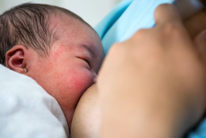 Before we get into the quantity, let's first just breakdown what exactly colostrum is, because you really couldn't dream up a more perfect food for your baby. Colostrum, aka newborn superfood, provides all the nutrients your baby needs in the first days of life. It is high in carbohydrates, high in proteins, and low in fats (which can be hard for a newborn to digest), according to Science Daily. Colostrum is also loaded with substances to protect against infections, according to HealthyChildren.org, the official site of the American Academy of Pediatrics. When you first see colostrum (and you might even get a glimpse of it before giving birth), it looks super rich and creamy yellowish. "Its color and thickness are due to the fact that it is higher in these protective factors," explained HealthyChildren.org.