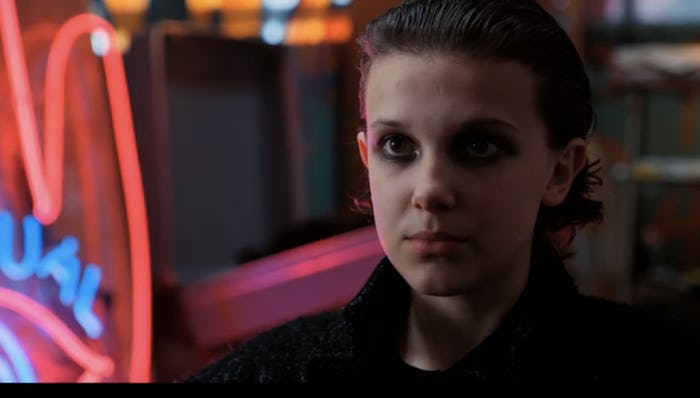 Seriously, the makeover scene in season 2, episode 7 is an '80s kid's dream: As "Dead End Justice" by The Runaways plays in the background, Eleven's new band of buddies help her transform into a smokey-eyed, slick-haired rebel queen. The blonde wig and borrowed dress are long gone for this girl. Her wardrobe and overall vibe has changed to reflect the darker storyline of the show.