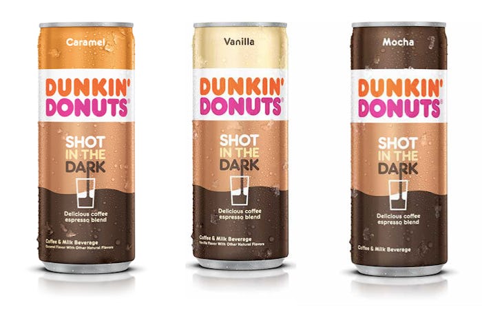 Three versions of Dunkin's Shot in the Dark canned espresso drinks will be available for customers to sip on, including Vanilla, Caramel, and Mocha, meaning there's truly something for everyone.