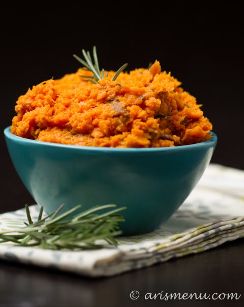 Although sweet potatoes are not really something that I fancy, my older cousin has convinced me that giving them a try this year will quickly change my mind. To win me over, he pulled out Ari's Menu's recipe for rosemary, olive oil, and sea salt mashed sweet potatoes. I'm very picky about what I eat — especially if it's vegan — but these mashed potatoes have made their way onto my list of vegan favorites. Sure that list may not be too big right now, but the fact that I even have one at this point in my life, is something truly special.