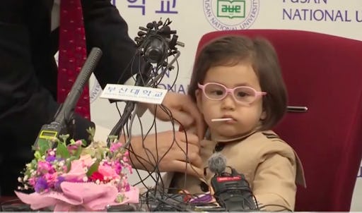 OK, so Marion didn't actually give the press conference, but she was there with her mom, Jung-A Kim and her 9-month-old brother James while her dad did. You can rewatch the press conference they did at Pusan National University in South Korea Wednesday morning via The Independent, and another one they did with BBC (using the same statement) via The Guardian here. They also gave a press conference to The Wall Street Journal for an American audience, covering all their bases.