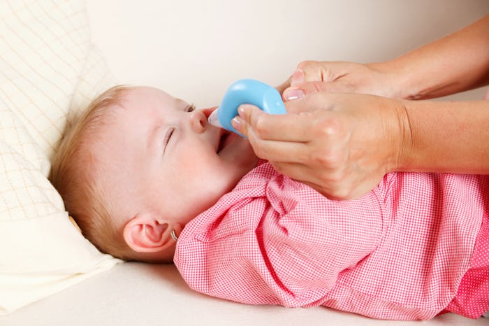 Nobody likes cold and flu season, but this time of year can be especially trying for parents with babies. Congestion is never comfortable, but infants have a particularly rough time trying to breathe when they're stuffy; after all, it's not like they have the motor skills to blow all that gunk out into a tissue. And, as you're probably all too aware, a baby who's all blocked up is a baby who doesn't sleep (or eat, or breathe). It's up to you to clear the way, and if this is your first time, you're probably wondering how to use a bulb syringe on a baby to get all that snot out of his nose.