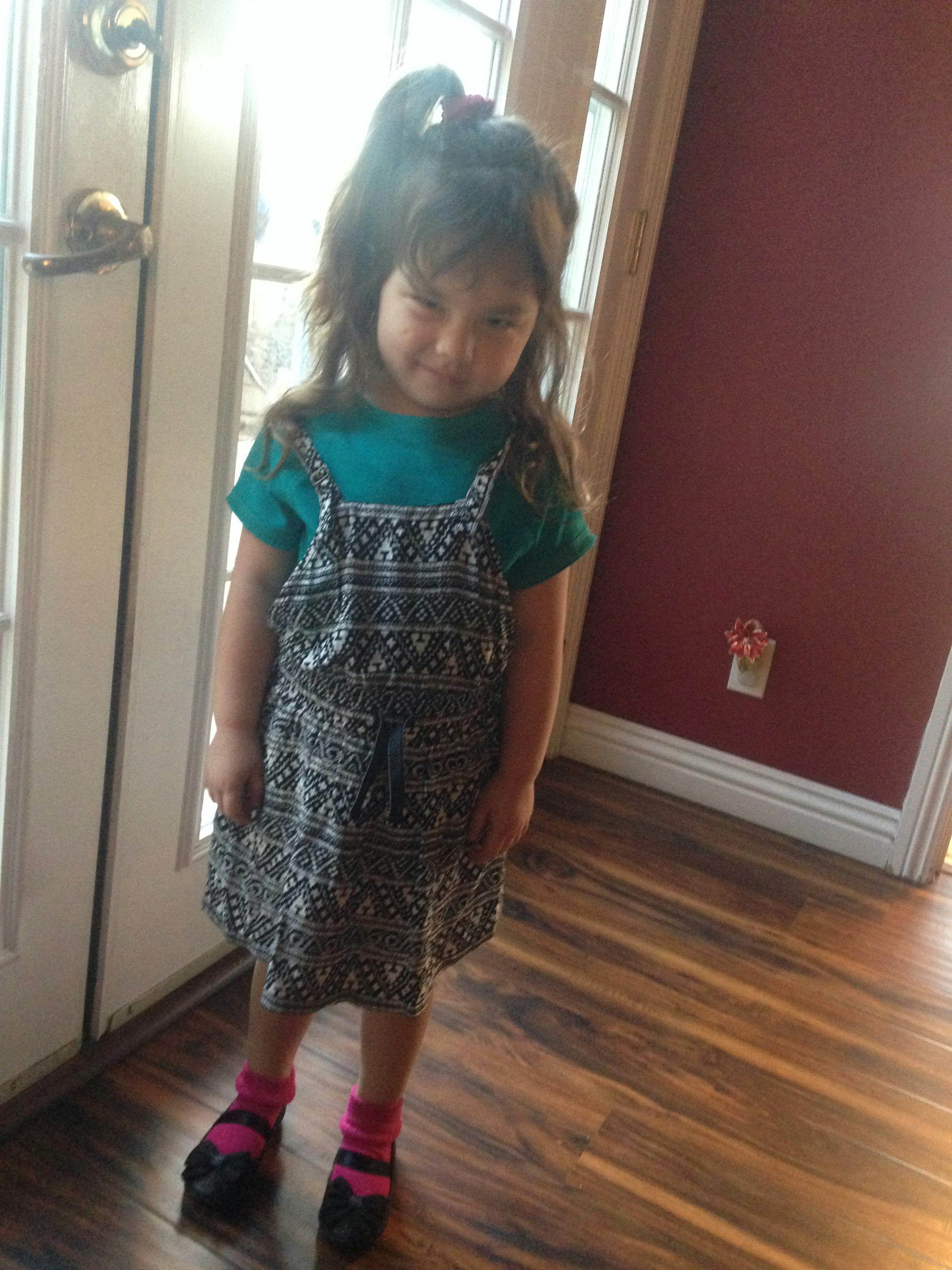 My husband took her to school and said one of her school friend’s told her, “I like your dress,” when she got to class. She was really excited about the dress but not so much the leggings.
