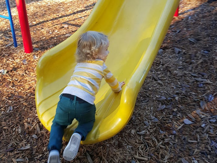 I continued to say "no," just as I had done during the six previous days, but I felt neither victorious nor defeated by this challenge. And my son didn't appear to be thriving with my consistent strictness nor did he act like his spirit had broken in the wake of my firm parenting. He continued to attempt to climb up slides regardless. In a way, I was disappointed because it felt like I hadn't done anything productive for either myself or my son in terms of structure, discipline, or overall parenting. So day seven concluded with a whimper, not a bang.