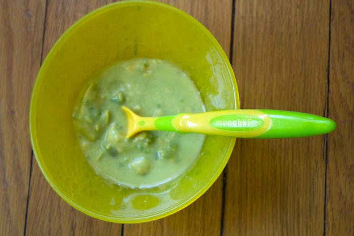 There are some very hardcore BLW advocates will give you crap for ever pureeing anything for your baby, because they are so ardently against pureed “baby food.” I think that’s stupid. If the idea is to introduce them to many different textures, one of those textures can be smooth. Also, there are some things that really aren’t safe that early on, but you don’t want to be cooking separate meals because that is the opposite of the point.