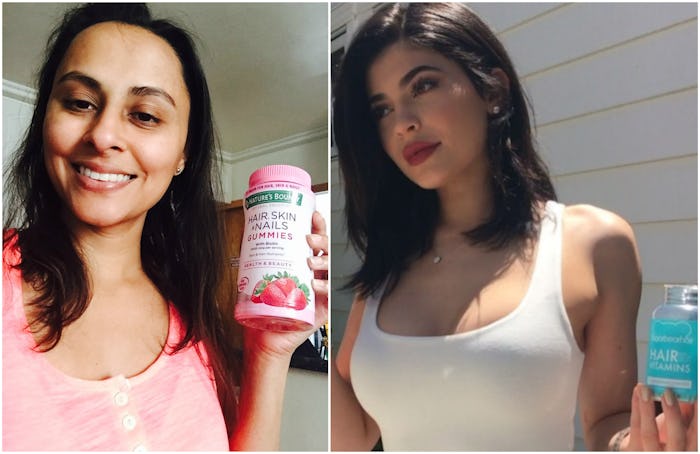At about nine months postpartum, I kept seeing celebrity endorsements for miracle gummy-vitamin hair-growth cures on Instagram. Celebrities like Kim and Kylie Kardashian were raving about Sugar Bear Hair Vitamins. Do I believe Kim K has ever wanted for full hair? I do not, but I did a little research and found that most vitamins on the market for hair loss contained biotin, so, science? After skimming product reviews, I settled on Nature's Bounty Hair Skin and Nail Gummy Vitamins, which were affordable and easy to find.