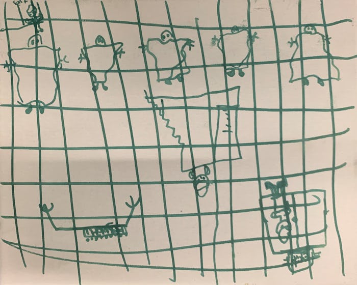 The third drawing depicts even more cage-like conditions, showing bars and what could be two toilets next to each other off to the side. According to TIME, the AAP said these three drawings were sketched out by a 10-year-old boy from Guatemala, an 11-year-old girl also from Guatemala, and another 10-year-old child whose country of origin was not identified.