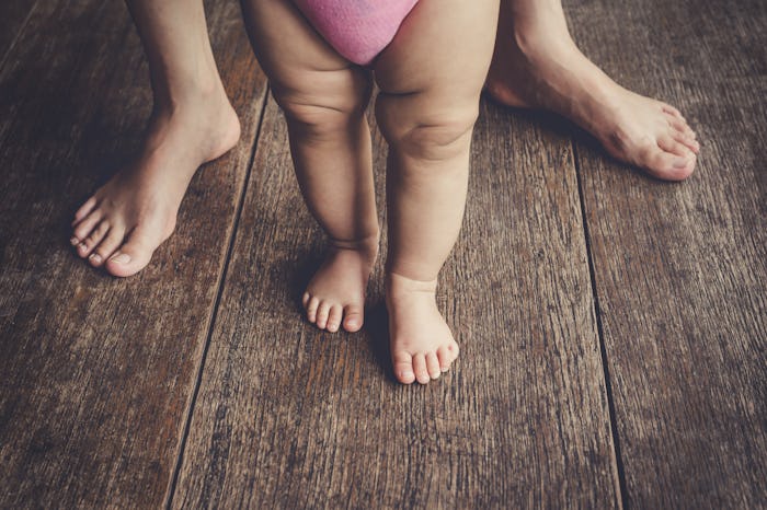 No matter how much you may want to try to be in the moment and enjoy every aspect of new parenthood while you can, it's often easy to get caught up worrying about milestones, and whether your baby is developing as they should be. When should they be smiling? Sitting up? Crawling? It seems only natural that parents would want to give their infants as much of an advantage as possible, so a new study showing that infants can begin practicing walking at only 10 weeks old might seem particularly eye-opening for eager moms and dads. But there's no need to panic if infant walking practice hasn't been on your new-mom radar — it definitely isn't something that will make or break your child's motor development.