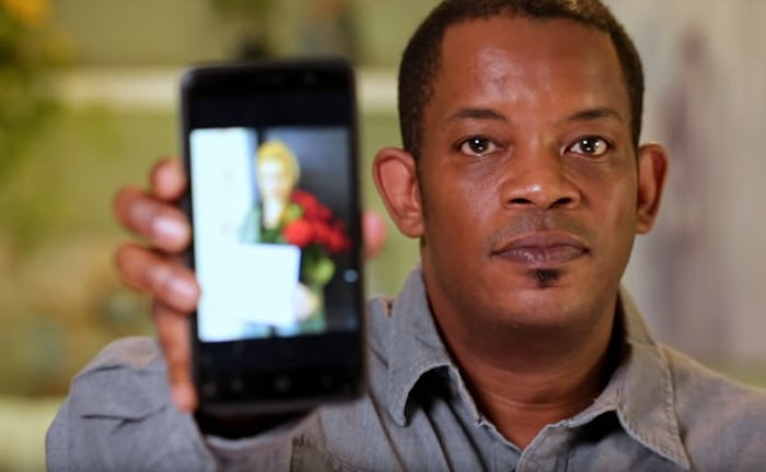 In the first episode of the season, Caesar — a 47-year-old nail technician from Jacksonville, Florida — said that he met Maria on a website called AnastasiaDate. “It’s a very special website that brings Americans and Ukrainian women to meet each other for a small price,” he says. “AnastasiaDate has a unique system. You can buy flowers, candy. Then it’s up to the girl whether she wants to respond.” Caesar then reveals a picture on his phone that shows Maria holding the flowers and card he sent her with his email and phone number on it. “This cost me $450 dollars,” he adds.