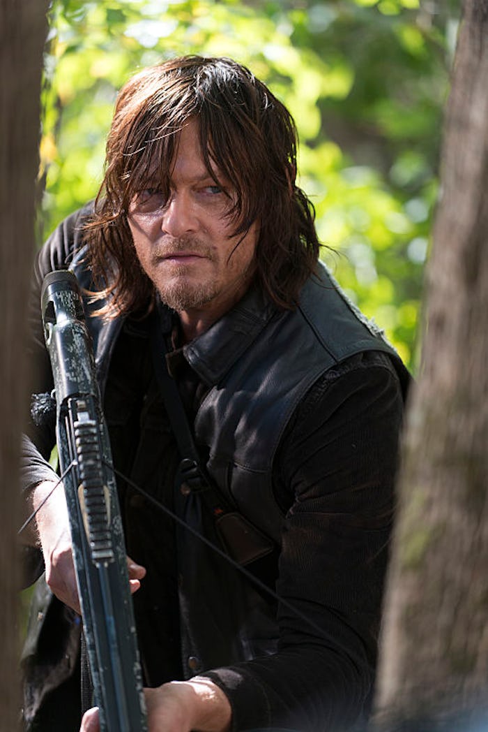 The Walking Dead loves to torture its audience by putting the most beloved of characters in the most precarious of positions. Tonight's episode ("East") didn't end in a question mark for one character – it left the fates of most of Rick's crew up in the air, including one fan favorite who audiences have been fearing for all season. That would be none other than Daryl Dixon, the crossbow-wielding badass who has mumbled his way into the hearts of ladies everywhere. The episode ended with a gun pointed at Daryl and a splatter of blood hitting the screen. But is Daryl really dead on The Walking Dead?