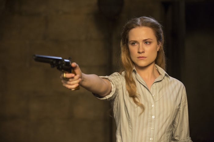 Dolores is making big moves on Westworld. When we first met her only five episodes ago, in the series premiere, she was an innocent farmer's daughter trapped in a horrifying life of repeated sexual assault and memory wipes. Of course, being a robot, Dolores was meant to forgot the atrocities committed on her – but that's not exactly working, anymore. Dolores is gaining more and more agency with each passing episode, culminating in an epic turn of events on tonight's "Contrapasso." But what sparked the former farm girl's transformation? Is Westworld's Dolores working with Arnold?