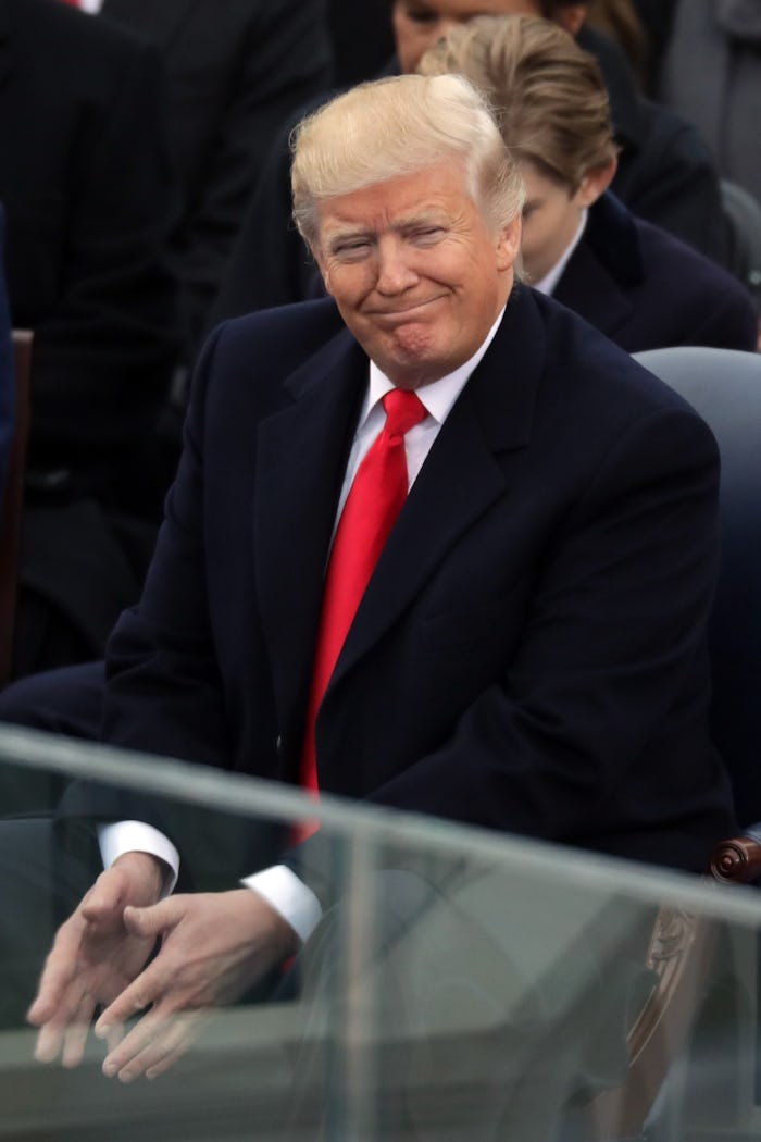 Trump gave his entire inauguration address in the rain and didn't seem to mind, even though military personnel were bringing out ponchos and umbrellas for some of the guests on the dais. The weather matched the tone of the speech he gave. Trump's first speech was not unlike other speeches he's given on the campaign trail, focusing on making America "great" again. But it was also a little doom and gloom. He talked about how there are no American jobs, and poverty in the "inner cities." He also mentioned that he would clean up "the American carnage" all over the country (don't worry, no one else knows what means either).
