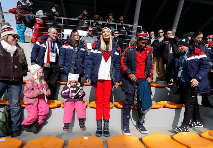 Following the visit, Ivanka traveled to PyeongChang, where she was spotted watching the four-man bobsled competition alongside American women's bobsledder Lauren Gibbs, according to The Associated Press. And it sounds like she was pretty psyched to be there; in a statement ahead of her arrival, Ivanka said she was "honored to lead the U.S. delegation to the closing ceremonies of the Pyeongchang 2018 Winter Olympics," according to USA Today, and that she was "[looking] forward to congratulating Team USA and celebrating all that our athletes have achieved."