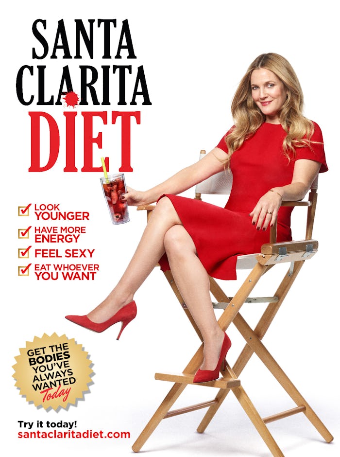 The title of Netflix's new series has left people wondering is the Santa Clarita Diet a real diet? The new series stars Drew Barrymore as Sheila Hammond, a real estate agent, wife, mother, and newbie zombie. Actually, "undead person" seems to be the preferred term on the show. Even though she's still a part of the land of the living in Santa Clarita, California, Sheila's death has altered her diet quite a bit. Sheila now has a hunger for human flesh and all things raw. Her smoothies are made of raw meat (gross) and her husband Joel (played by Timothy Olyphant) now helps her kill people so she'll have something to eat. (And people say romance is dead.) While the Santa Clarita diet is working great for Sheila, I'm thankful that it's not a diet that should be tried in real life.