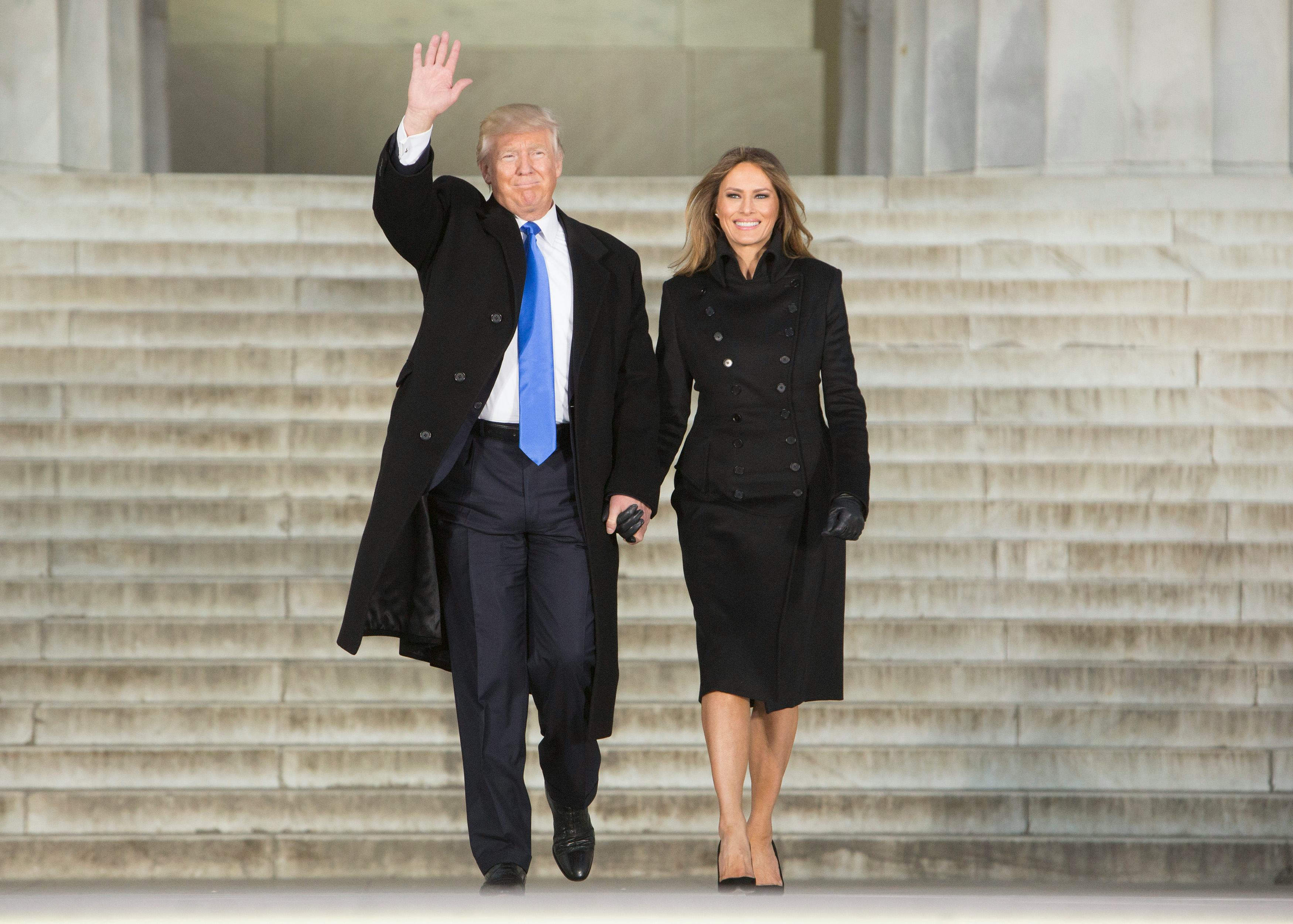 Trump and his family descended on Washington on Thursday to kick off the weekend of festivities. The president-elect and his wife Melania arrived at Lincoln Memorial just after 4 p.m., appearing on stage to the tune of the Rolling Stones singing "Heart of Stone" (which perhaps does not bode well for the future of the Union, but never mind). The afternoon had a surreal feeling to it, with Three Doors Down performing and Trump awkwardly rocking side-to-side sort of in time with the music. Actor Jon Voight spoke in honor of Trump, who told the cheering crowd that God had "answered their prayers" by sending Trump to lead the country. Other performers took to the stage, including country singer Toby Keith (exuberantly drinking from a red solo cup between songs), YouTube favorites The Piano Guys, and the Frontmen of Country. After a few hours of stiff rocking back and forth, Trump took to the stage to address the crowd: