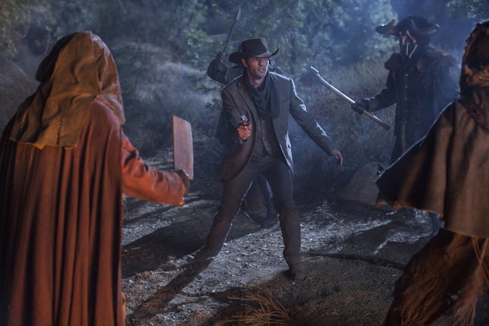 In the first three episodes of Westworld, we've seen Teddy and Dolores go through the same story multiple times, but on Sunday's night episode "The Stray," Dr. Ford added something new to their story. Rather than making Teddy have some mysterious backstory that he can't really explain, Dr. Ford decided to fill in the blanks and give him a specific character arc that involves a new villain named Wyatt. One would assume Wyatt is a robot in Westworld since he's a creation of Dr. Ford... but is he?