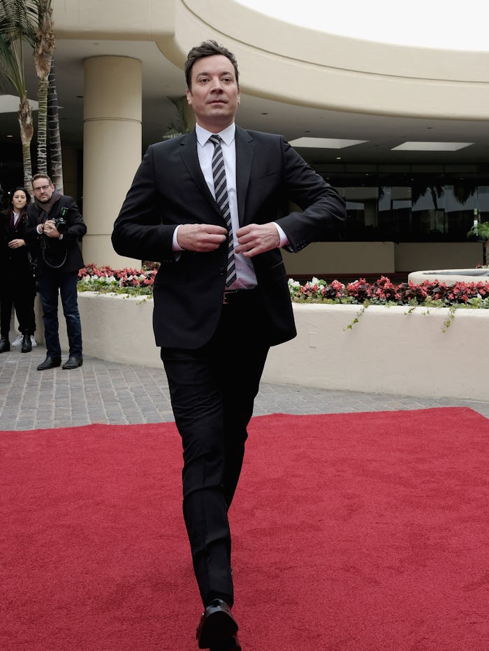 In fact, Fallon told Esquire earlier in the week that he was fine with his "Mr. Nice Guy Schtick." He said, "If I hit somebody, it's a very subtle hit, and everyone's in on the joke. I want to make sure everyone's laughing and having a good time." Fallon added, "And I'm hopefully going to book the people in this crowd the next week, so I'll be edgy, but it's all in good fun, and I know how far I can take it."