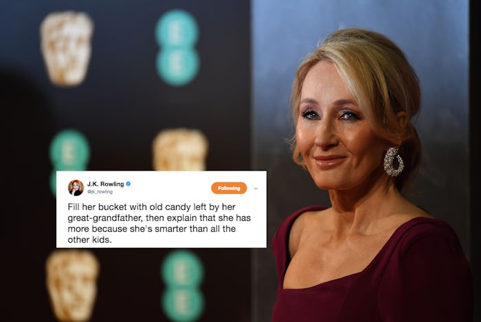 Trump Jr. critics quickly took to Twitter to call him out for his misinformed lesson on what he seems to believe socialism really means. In this case, he seems to believe socialism looks like children willfully avoiding trick-or-treating — which is basically one of the best things about childhood ever — in the hopes that some hardworking child might go out and do all the "work" for them, aka, going door-to-door to collect free candy from people. As the responses started rolling in, J.K. Rowling's response was perhaps the most salient of them all. She had an alternate idea for Chloe, the child being used by her father as a tool to misinform. Rowling wrote: