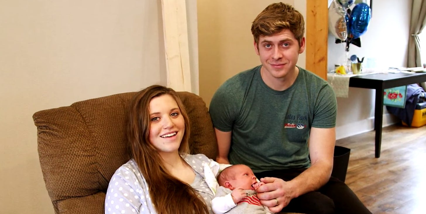 There is always so much that is happening the in the lives of the members of the Duggar family. Really — on their reality show, Counting On, so much transposed over the past season with the older Duggar siblings that Joy-Anna's entire pregnancy was documented in one episode. Although Joy-Anna might have given birth on TV last week on Counting On, she welcomed her son, Gideon last month on Feb. 26, according to E! News.