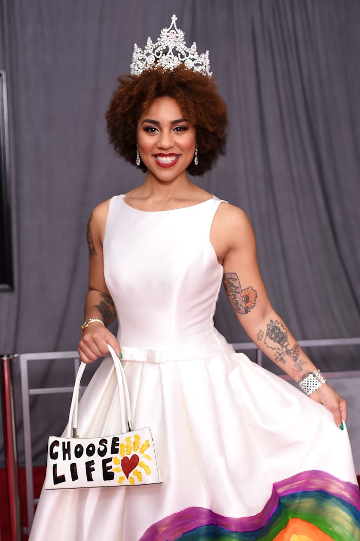 Given the political climate this year, it only makes sense that social issues are infused into this award season, whether it's Time's Up pins at the Golden Globes or talking about diversity and sexism on the red carpet. Since artists tend to have a reputation for leaning a little left, it was pretty shocking to see Joy Villa's "Choose Life" dress at the Grammys this year, taking a very partisan stance on music's biggest night.