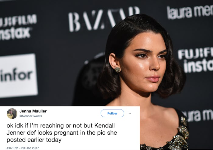 As if we all weren't totally inundated with Kardashian and Jenner pregnancy news, now people are spreading Kendall Jenner pregnancy rumors. While I'm never one to turn down some KarJenner news (especially when it comes to adorable babies), these rumors are all based on one selfie the supermodel took in which her stomach is on full display, which is just wrong on so many levels.